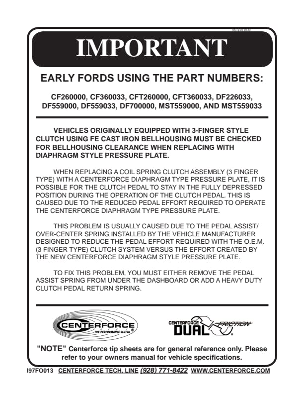 The Centerforce Dual Friction(R) Clutch Series uses patented technologies for an ultimate pressure plate and disc combination.