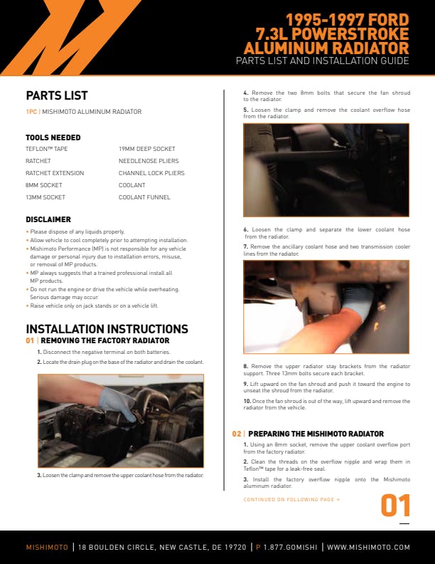 it bolts right up to the stock fan shroud, allowing for easy installation.Included with the Mishimoto Powerstroke aluminum radiator is our magnetic drain plug and signature lifetime warranty.